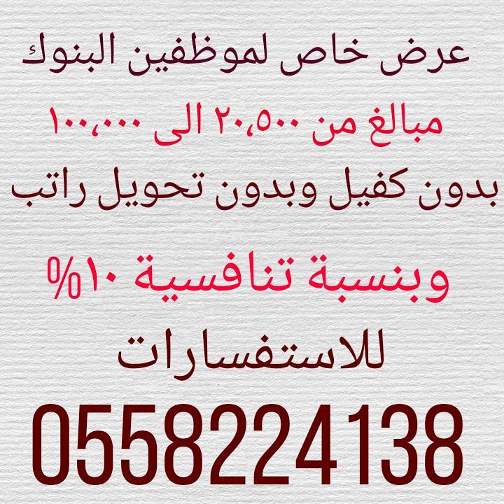 تمويل شخصي بدون تحويل راتب لجميع القطاعات الحكومية والخاصه