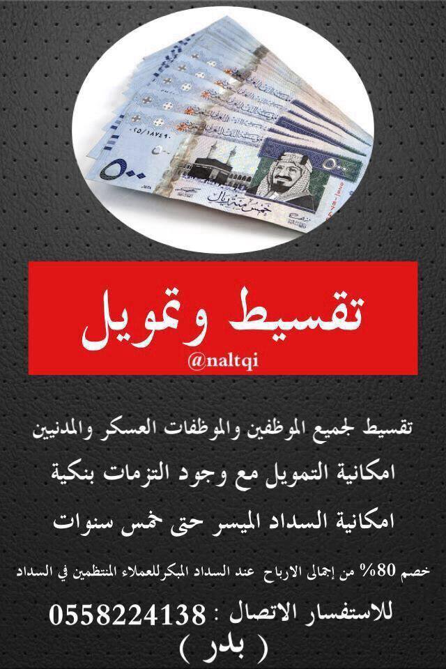 تقسيط يلبي احتياجاتك وباقساط مريحة , تقسيط شخصي بمبالغ تبدأ من 5 الاف ريال وتصل حتى 250 الف ريال